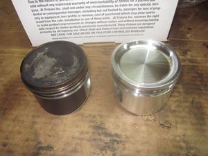 One the left is the stock 80mm Pistons. On the right are Guzzipower 85mm