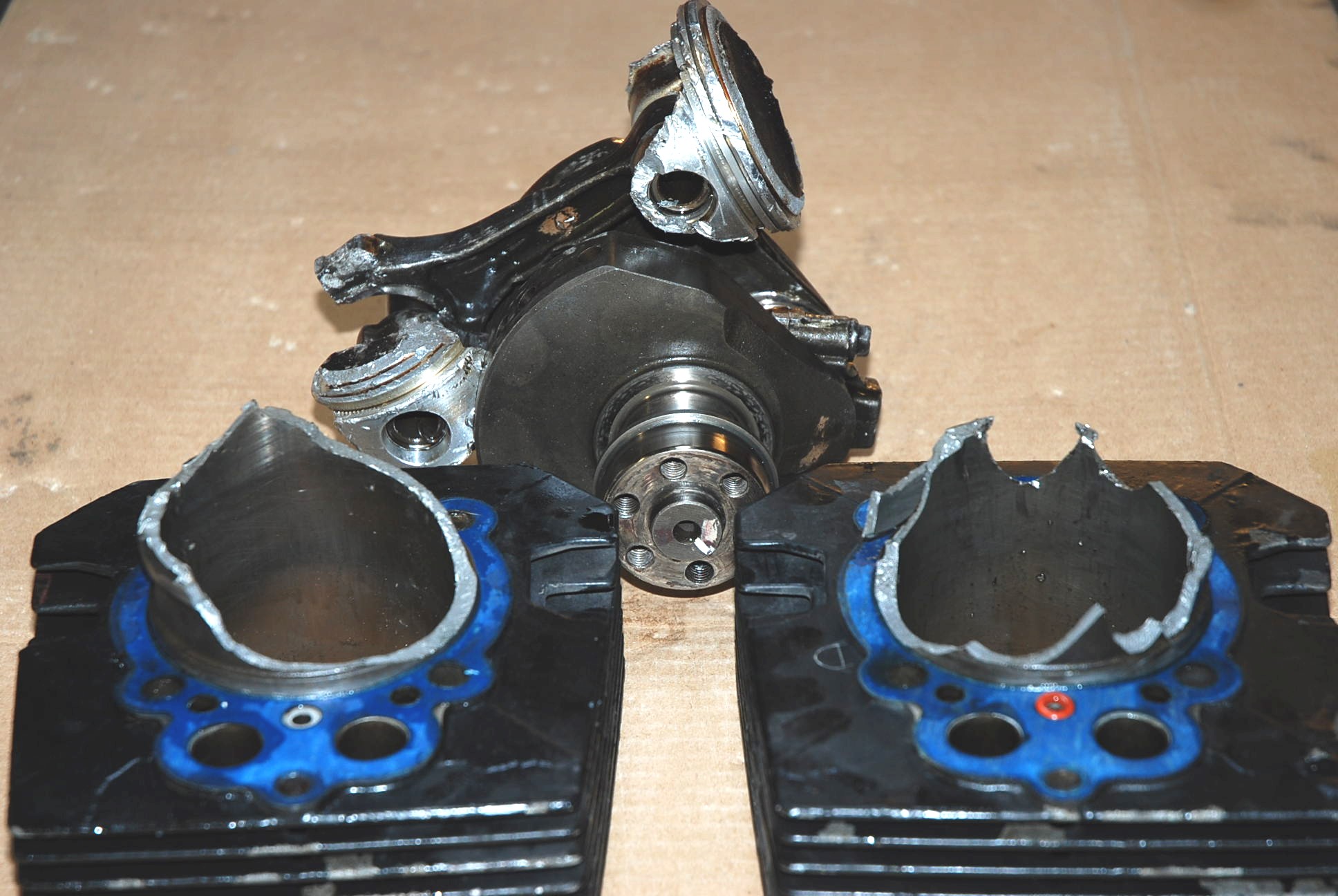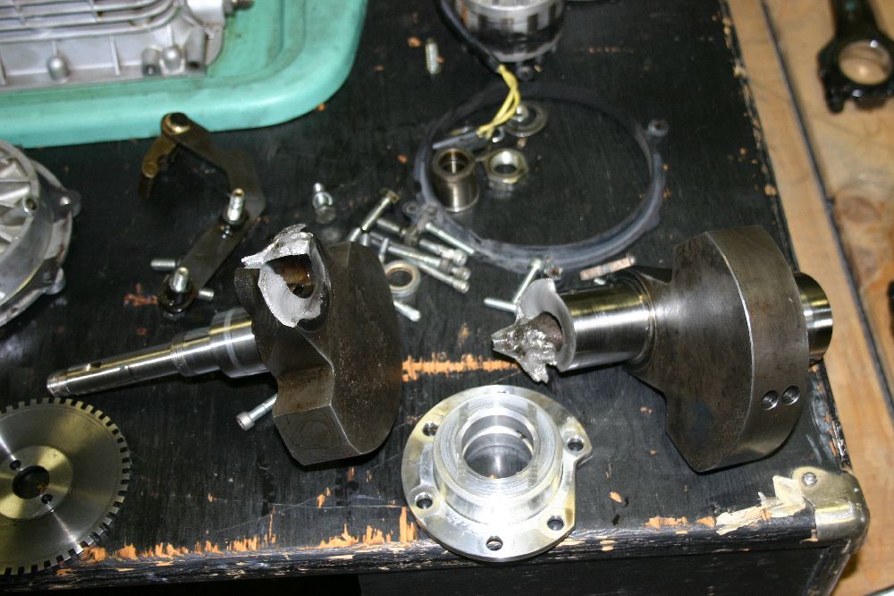 | I see internals Cracked crankshaft, pummeled pushrods This looks expensive. |
