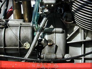 a few km later the engine cut out I had to stop. I found then that the rear drive casting had a big hole in it and oil was all over the rear of the bike. I had happily gone around bends without realizing it! The engine restarted after I reseated the connector on the back of the front light case, and I rode home quietly, thinking of the remarkable coincidence: my Moto Guzzi had stopped the engine as I did not realize the problem! She was paying me back of the loving attention to bring her back to life after years of neglect... Ennio Carraro Italy |
